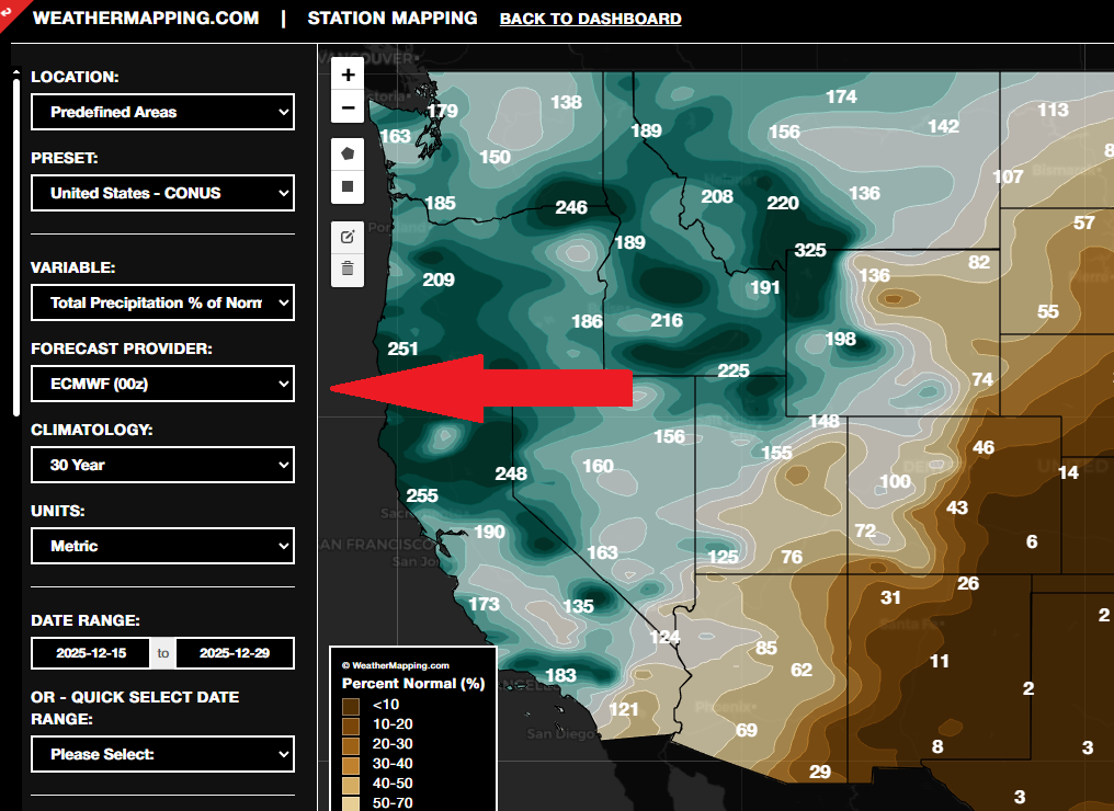 There is no need to redraw regions, reselect stations, or reset your map. You are simply changing the forecast source behind the scenes, and WeatherMapping takes care of everything else.
